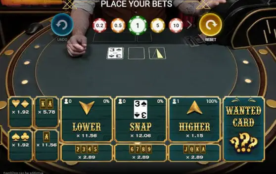 As the name suggests, this is a live dealer game in which you bet on whether the next card drawn from the deck is higher or lower than the previous card.