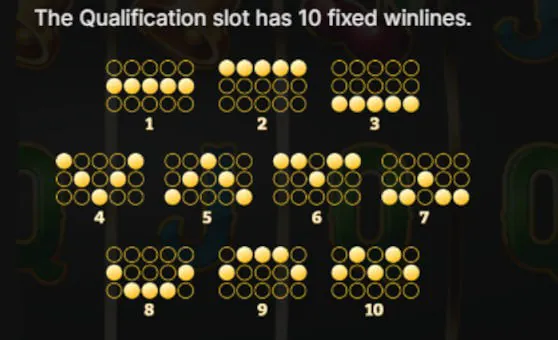 The qualification phase uses a 5-reel slot with ten pay lines.