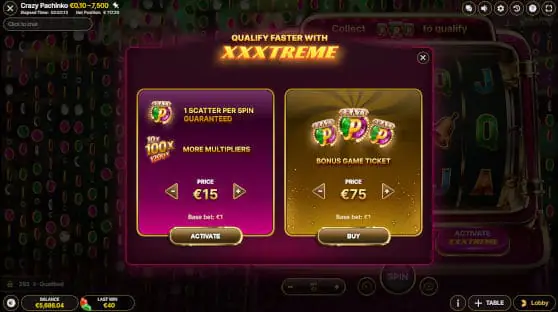 - You can buy help to qualify through the XXXtreme Spins feature. Get one guaranteed scatter per spin, or get all three with the feature buy.