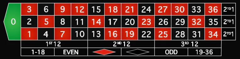 | 1st 12 (Dozen) | 2-1 | 32.43% | |