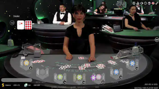 Vivo Gaming offers one version of Blackjack. It's a seven-seat game played to Vegas Rules (the dealer gets two cards). There are two optional side bets (21+3 and Perfect Pairs).