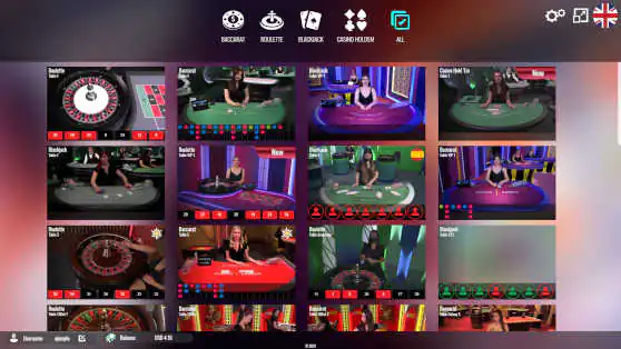 One of the unique features of the lobby is the active tiles showing each of the tables. They display a video clip of the current dealer and play on the table (about 3 seconds).