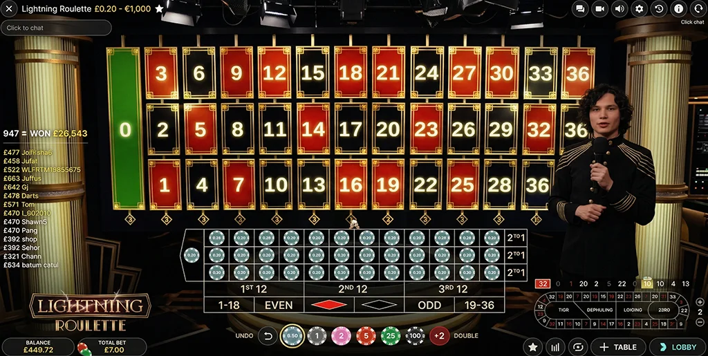 Lightning RouletteEvolution29:1Up to 550x to 500xNoneStraight-Up