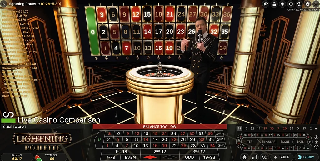 A straight-up win on Lightning Roulette pays 29:1 instead of the usual 35:1, which is how Evolution funds this multiplier game feature.