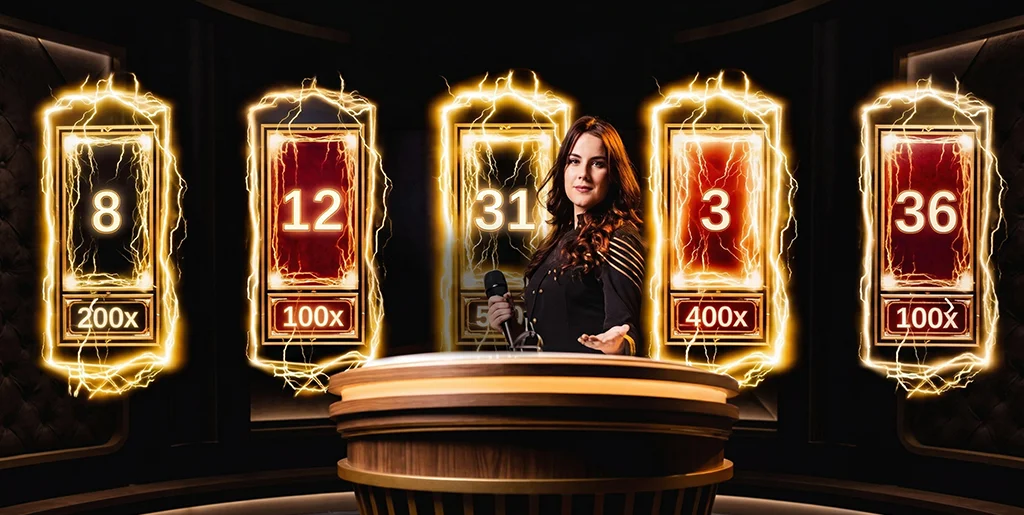 Lightning Roulette is a live dealer roulette game by Evolution, the first of its kind, released in 2018. On each spin, up to 5 Lucky Numbers have their payouts increased by multiplier amounts of 50x, 100x, 200x, 300x, 400x, or 500x.