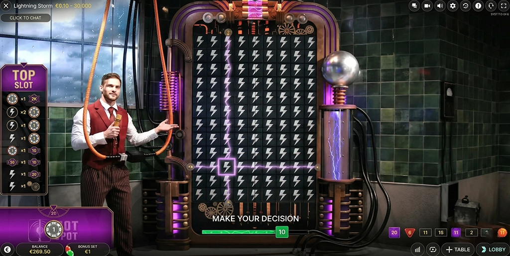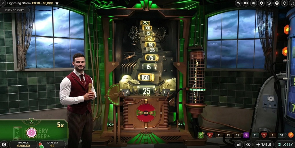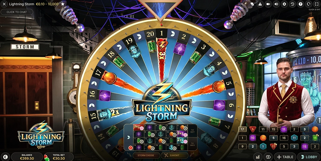 Lightning Storm is a live/RNG mix game designed to eliminate tampering by the presenter and players. RNG decides the wheel layout in real-time and the payouts for the bonus rounds. The main wheel is live and spun by the presenter, but as the segments change each game, there is no way for the dealer to target specific sections. The only hack is the strategy you use to play.