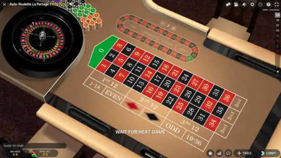 La Partage is the more common and simpler of the two rules that French Roulette can have. Note that a French roulette table can have either la partage or en prison rules, never both simultaneously.