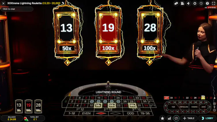 | Xxxtreme Lightning Roulette | Evolution | 19:1 | Up to 10 | 50x to 2000x | None | Straight-Up | Leo Vegas |