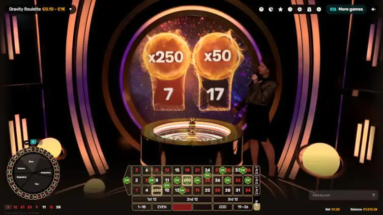 Gravity Roulette lets you play any inside bet and qualify for the multiplier.