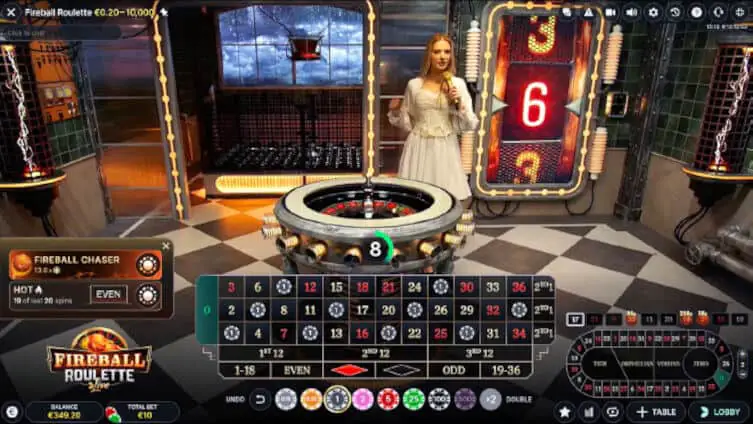 Fireball Roulette is a live dealer multiplier roulette game with a bonus round and a maximum payout of 2,500x.