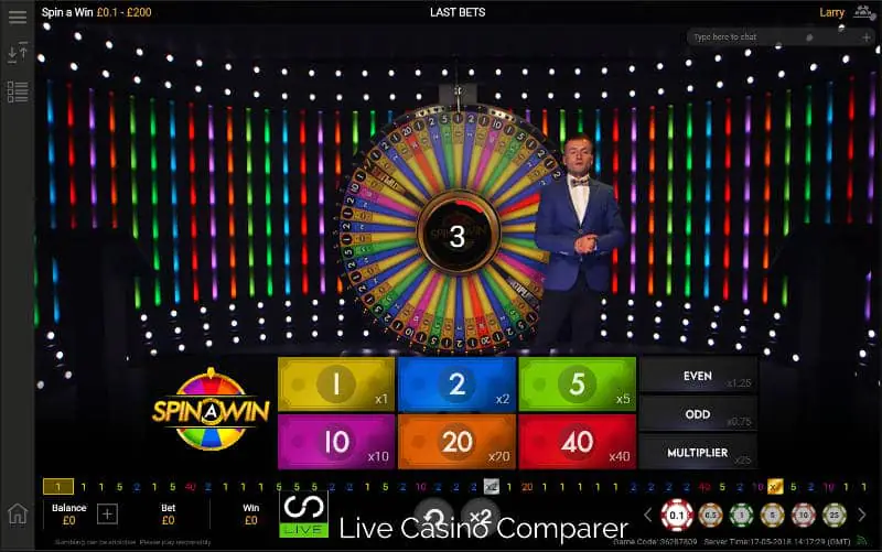 Playtech Spin A Win is similar to Dream Catcher but with additional side bets and a great alternative if you like more edge to your game. You can play side bets without the main bet.