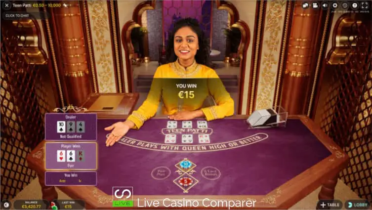 Until then, Evolution Teen Patti is the best live three-card poker game out there.