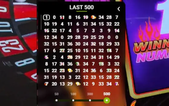 Up to the last 500 results can be viewed in the playing interface. You've got the choice of filtering the results between the previous 50, 100 and 300 or opt to view the total 500.