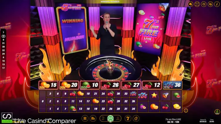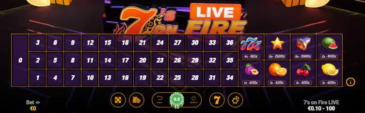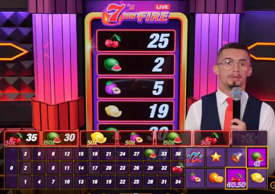 7’s On Fire Live is a live dealer game show that fuses Roulette with an online slot that delivers regular multiplier payouts.
