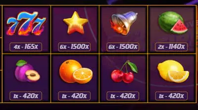 Lemon / Orange / Plumb / Cherry2 Symbols1x3x50x97.14%