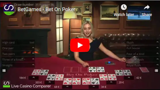 Bet on Baccarat is a live game similar to Baccarat or "Punto Banco". The difference is that there is a betting round after each card is dealt.