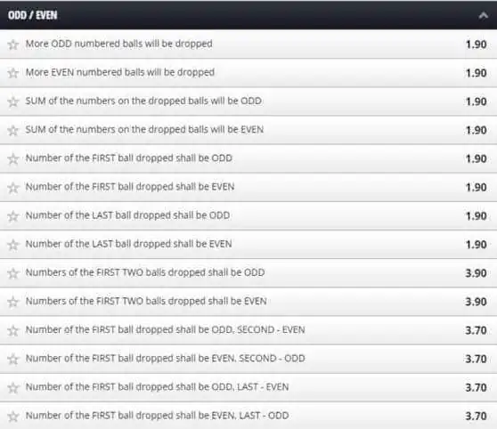 These bets are all about the numbers drawn and whether they will be odd or even. You can select a lot of different combinations.