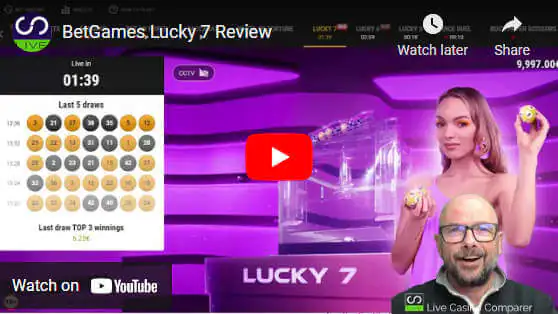 Betgames Lucky 7 is a lottery style game, where seven balls are drawn from a selection of 42 numbered balls of assorted colours.