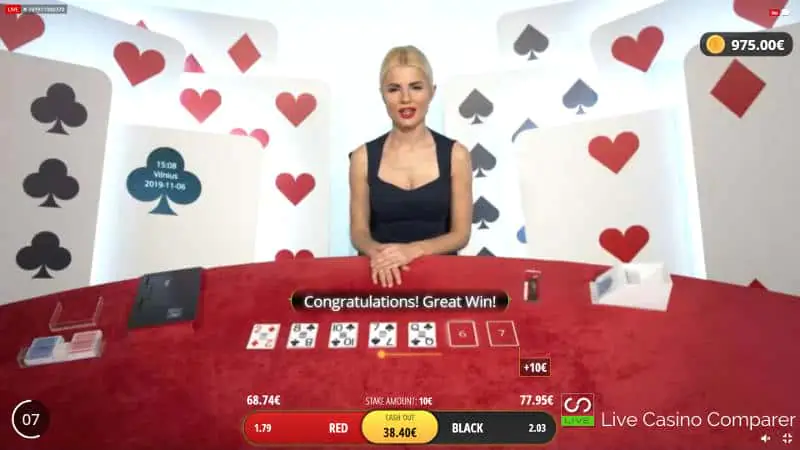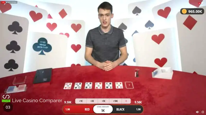 Betgames Speedy 7 is a live dealer card game, where you're betting on whether the next card dealt will be Red or Black.