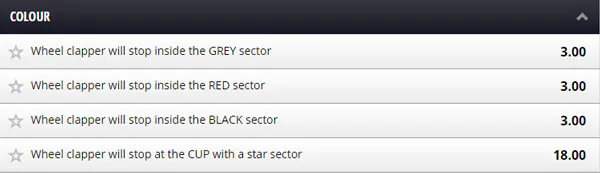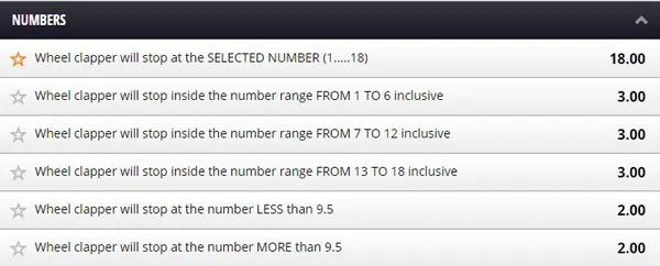The wheel has 19 segments that are numbered 1 to 18. The 19th segment has a special symbol of a cup and star and this acts very much like a single number bet that pays 18:1.