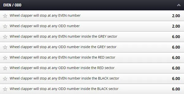 Even money bets with a difference. Extended odds are available if you bet on odd/even within a colour.