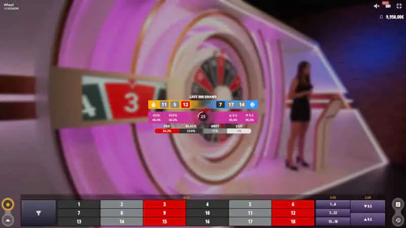 The wheel was switched to an RNG controlled wheel for a number of reasons. Firstly to differentiate the game from the ones produced by Evolution, Playtech and Pragmatic Play. Secondly, to allow the game to operate automatically, with the dealer located elsewhere (to counter Covid restrictions).