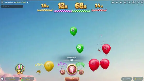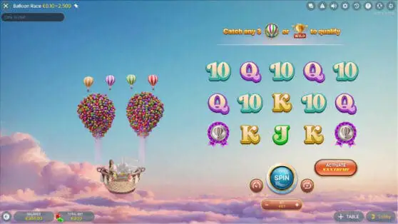 Balloon Race is a new theme idea, but it uses the same game mechanics of qualification, topping up, and the final bonus payout.