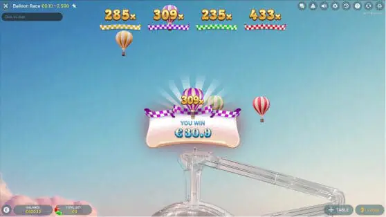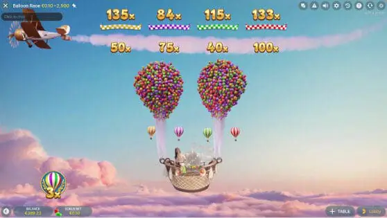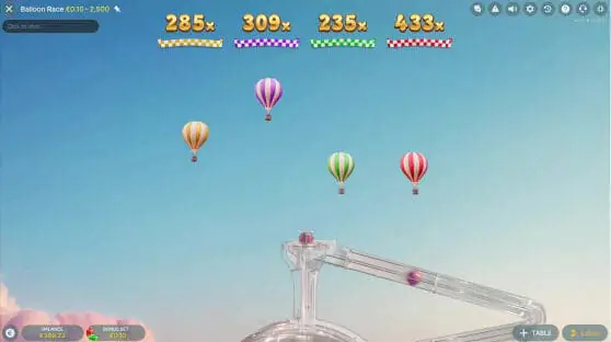 The Balloon Race is where you win your final payout. The coloured balloon that reaches the top first is the winner, and everyone receives the multiplier payout.