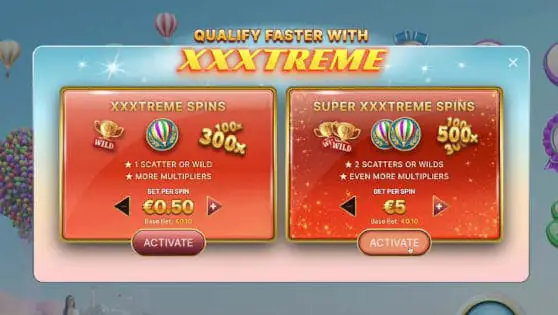 • Three playing modes accelerate the qualification process, standard, where each spin costs a base stake; XXXtreme Spin Mode, which is five times the base stake but guarantees one Scatter or Wild each spin; and Super XXXtreme spin mode, which costs 50x the base stake and guarantees two scatters or Wilds per spin.