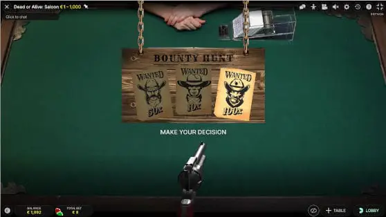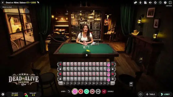 Dead Or Alive Saloon Live is a card game by Evolution that delivers multipliers as the prize if you correctly identify the first card or playing suit to be revealed by the dealer.