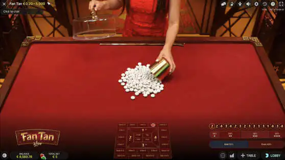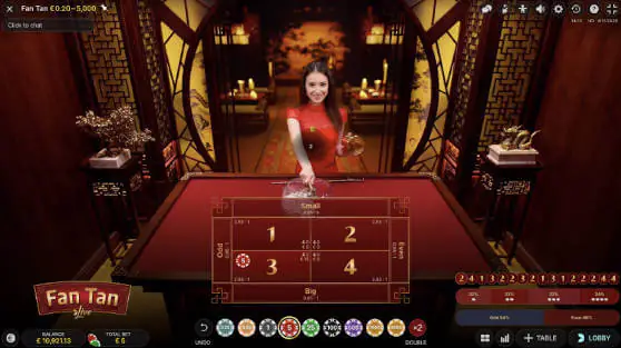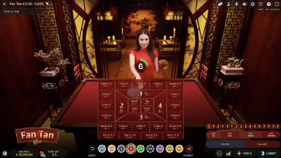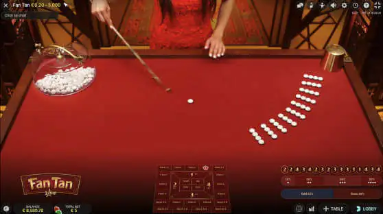 Evolution Fan Tan can be played at most casinos that have Evolution Live Games.