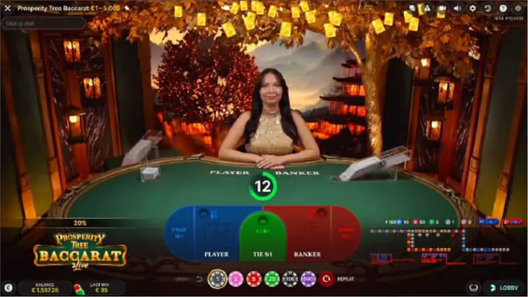 Prosperity Tree Baccarat is available at all Evolution Live Casinos.