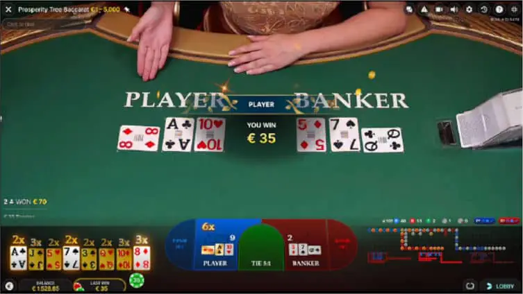 Prosperity Tree Baccarat joins a list of Baccarat games that deliver multipliers to the payouts of winning hands.