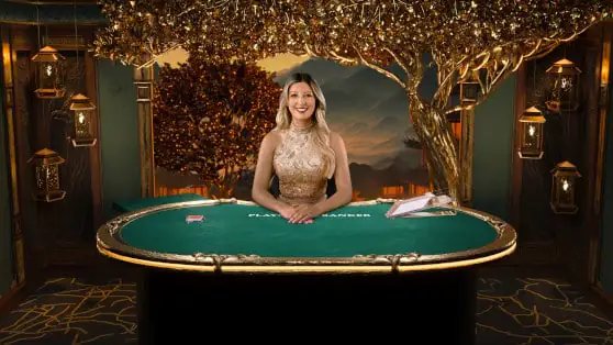 The difference with Prosperity Tree Baccarat is the ornate design of the studio, incorporating the golden tree of wealth from which eight Prosperity multiplier cards rain down each game round to potentially boost the payout of winning hands.
