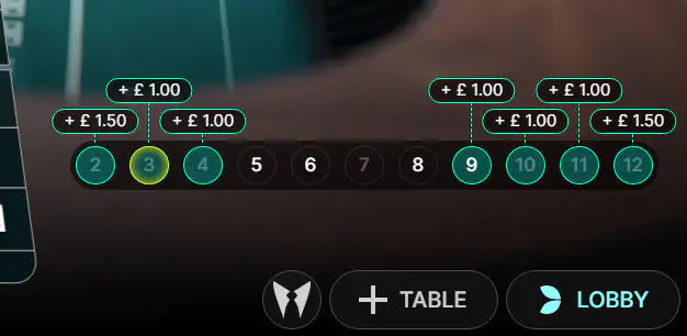 - Outside Numbers - Betting on 4, 5, 9, or 10.