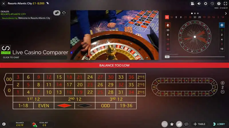Evolution Atlantic City Resorts Roulette is a land based roulette table that's streamed online from the Resorts Casino in Atlantic City.