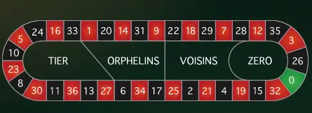 • The traditional Racetrack with French Bets can’t be used on the American table. An alternative racetrack with up to 9 neighbour bets is provided instead.