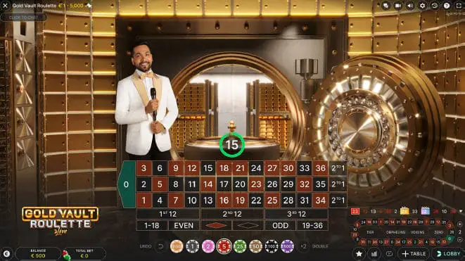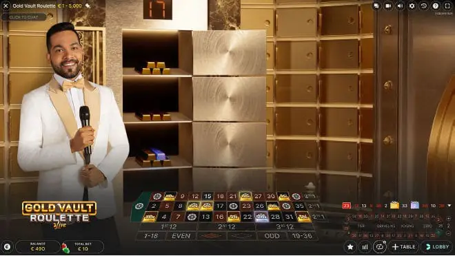 Gold Vault Roulette is a live dealer multiplier game built using the studio from the decommissioned Gold Bar Roulette.