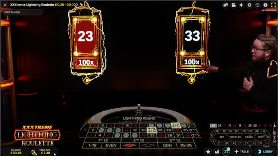 Xxxtreme Lightning Roulette plays like any regular game of live roulette. However, a couple of additional features occur once betting time has closed, making the game payouts different.