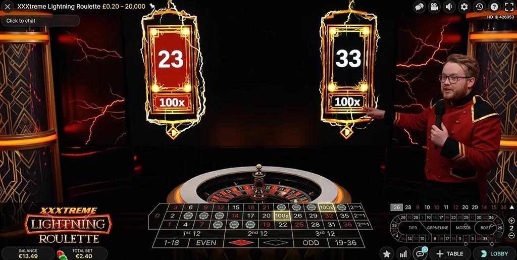 Xxxtreme Lightning Roulette plays like any regular game of live roulette. However, a couple of additional features occur once betting time has closed, making the game payouts different.