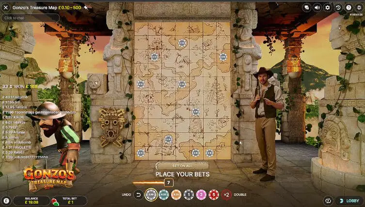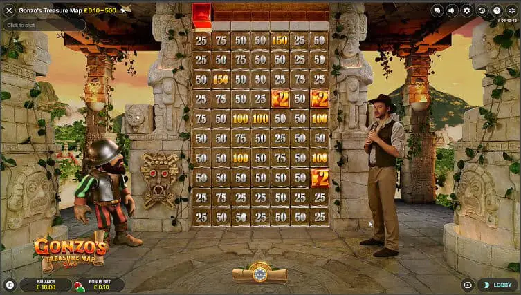 Gonzos Treasure Map is an RNG game, start to finish. The only live element is the presenter, who stands there commentating on the game and having a general chit-chat with players.