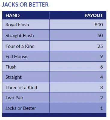 Jacks or Better is the most basic version of video poker. It’s almost the entry-level game of choice.