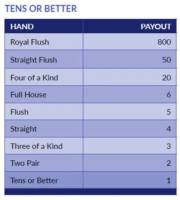 Tens or Better follows the same basic rules as Jacks or Better, but the minimum qualifying hand to win is a pair of tens instead of Jacks.