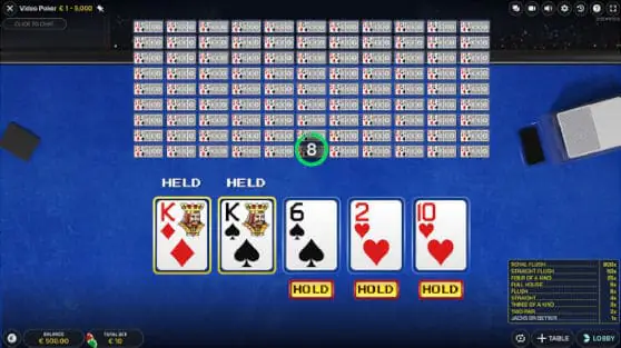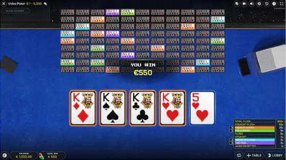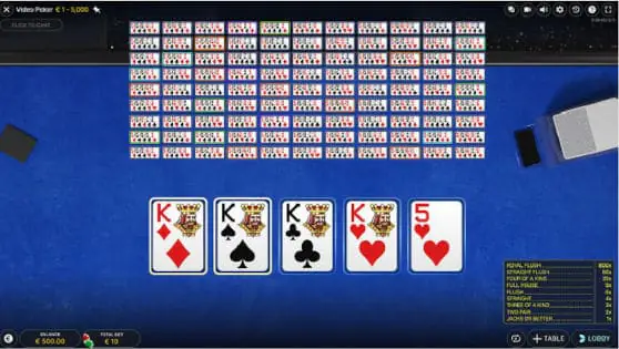 You can play up to 100 hands in Video Poker Live. My advice is to play no more than ten. You’ll still get a great experience, and you can see the hands’ outcome without relying on the playing interface to tell you which hands won.
