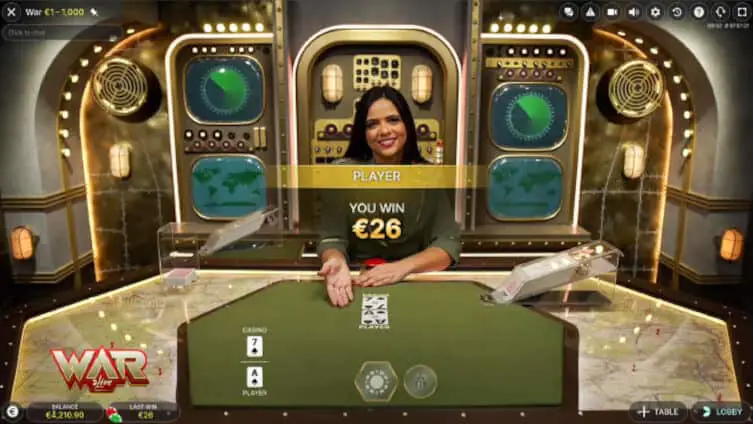 Personally, I'd stick to Football Studio or one of the other games where you're playing one card against the other. The War doesn't bring anything to the table other than a gamble, which, at best, you will win 50% of the time!