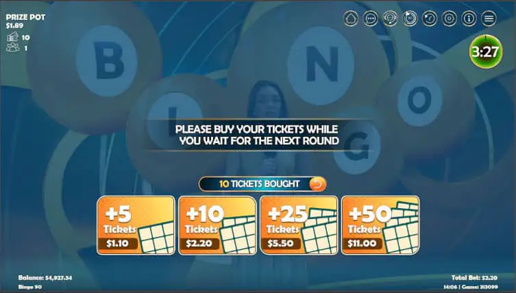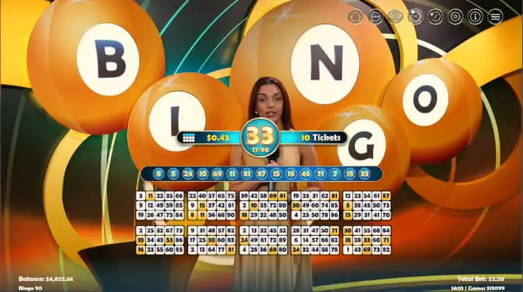 Based on the traditional 90-ball Bingo, EZ Bingo 90 is an RNG game presented by a live host. The main difference between the two is the number of numbers on the cards, the traditional version has 27, EZ Bingo 90 has 15.