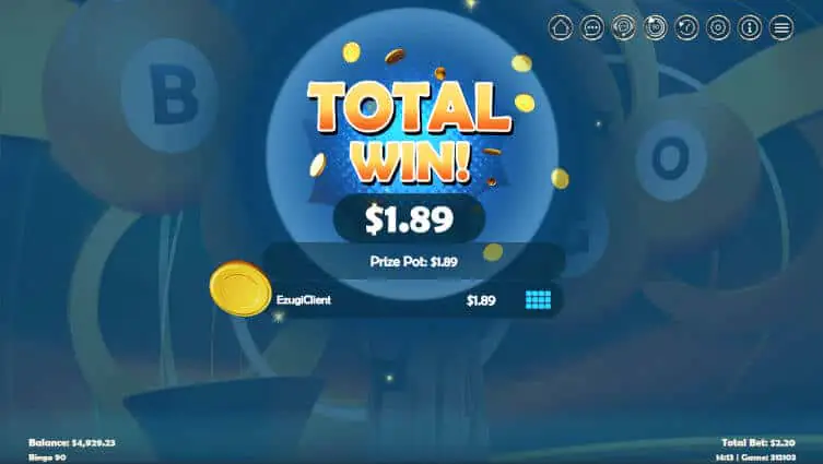 EZ Bingo 90 is not a game to play on your own, because even if you win all three prizes, you won't get back what you staked, as the house takes 13% rake from the total bet.