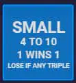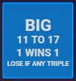 Bet Big if you think the total of the three dice will be between 11 & 17, or Small if you think the total will be 4 to 10. Note, that if a triple is rolled the bet loses.