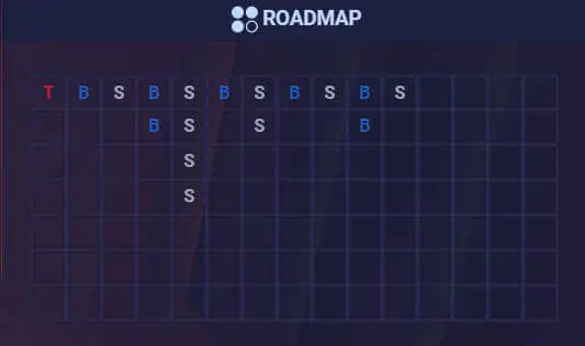 The road map is displayed in a more traditional view and depicts for each game round whether the result was Big or Small and the sequence the results occurred.
