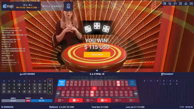 To get better returns we need to adopt a riskier strategy when playing Ezugi Sic Bo online.